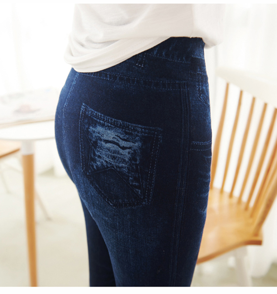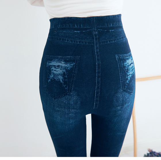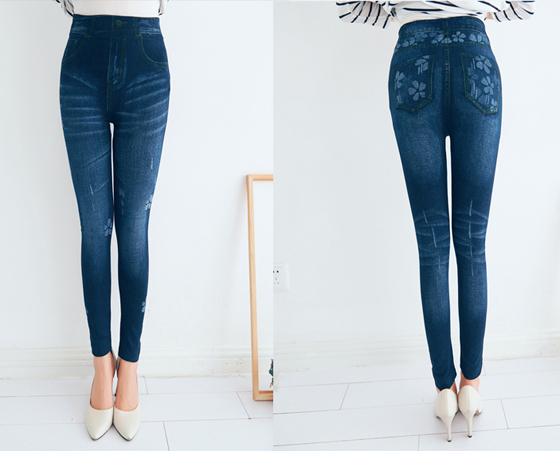 韓風刷絨保暖大彈力印花棉牛仔褲